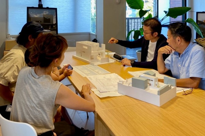 田都会の参加メンバーはほとんどが建築家ですが、われわれFDBの西村と当山は、数少ない非建築家メンバーで、「家づくりディレクター」としての役割を担っています。具体的には、まずはじめに家づくり全体の資金計画を立てることから始め、「土地探し」や「建築家とお施主様のマッチング」をはじめ、住まいの完成までお施主様と伴走しながら丁寧にサポートしています。「家づくりのディレクター」という名称は聞き慣れないと思いますが、建築家との家づくりにおいて全体の進行を把握し、お施主様と建築家の間に立って、円滑なコミュニケーションのお手伝いをしながらスムーズにプロジェクトが進むよう心がけています。